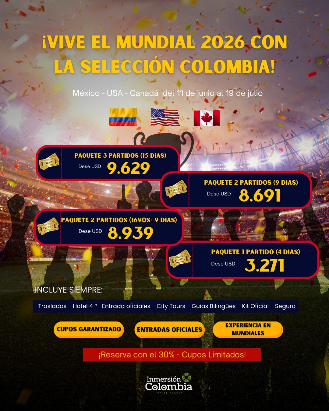 *Sujeto a verifiacion y disponibilidad de fechas.